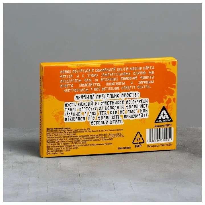 Купить игра для компании "фанты буханты" 20 карт от 100 руб. с доставкой до пункта выдачи в Заринске. Интернет магазин ДекаМаркет. Оплата при получении.